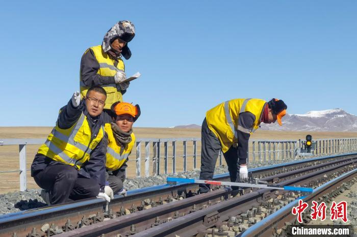 圖為西藏工匠高錢勝(左一)和團隊在青藏鐵路凍土區段進行路基病害整治和檢查。受訪者供圖