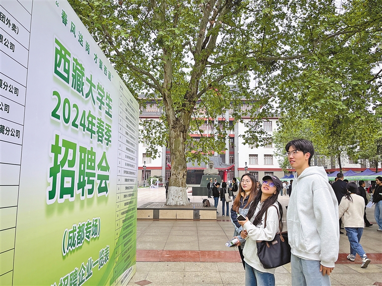 就業,是莘莘學子邁向社會的第一步。為進一步落實好自治區黨委、政府關于穩就業保民生工作部署,促進重點群體,特別是高校畢業生高質量充分就業,區人社廳聯合區政府駐成都辦事處、西南民族大學、拉薩市人社局、山南市人社局成立專班,于4月8日、9日赴四川省成都市,在西南民族大學武侯校區舉辦“春風送崗 才聚西藏”西藏大學生2024年春季就業創業系列活動(成都專場),給高校畢業生提供更加精準的職業指導,幫助他們進一步轉變就業觀念,理清就業思路,促進高校畢業生實現高質量充分就業。