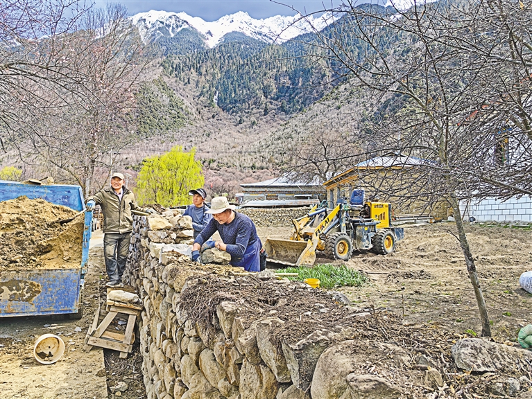 漫步村落,遠遠就聽見喧鬧聊天和砌墻的聲音,原來是強巴一家正在給果園砌圍墻。“院里的蘋果樹發芽了,為了防止牛吃,我們就用石頭將圍墻壘得高一些,杜絕一切影響蘋果收成的因素。”強巴爽朗地笑道,“去年我們家賣蘋果共收入4萬元,一年之計在于春,現在就要做足準備,今年收成肯定會更好!”閑談間,強巴從家里拿出一籃自家產的蘋果分給大家吃,深紅的蘋果在陽光下閃耀著誘人的光澤,散發著春天的甜美氣息。