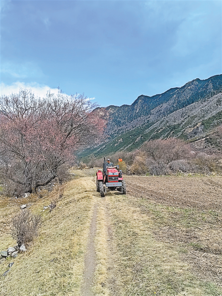 一輛紅色的旋耕機在田地旁停下來,曲美仁增邊換犁頭,邊感嘆著科技帶來的便捷:“以前耕地全靠牲畜,費時耗力,現在開著旋耕機就把地耕完了,聽著這機器轟隆隆的聲音,我覺得格外開心,好像在說我們尼屋的春天特別美,我們的生活肯定也會更幸福!”