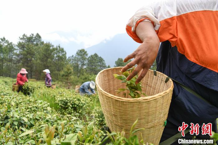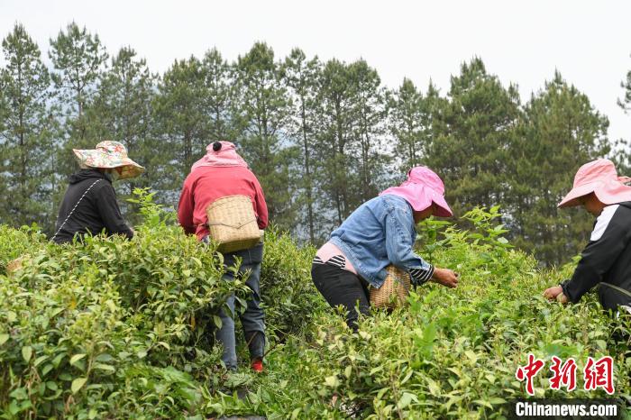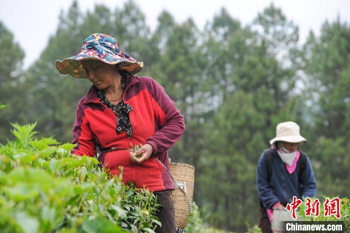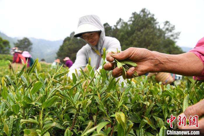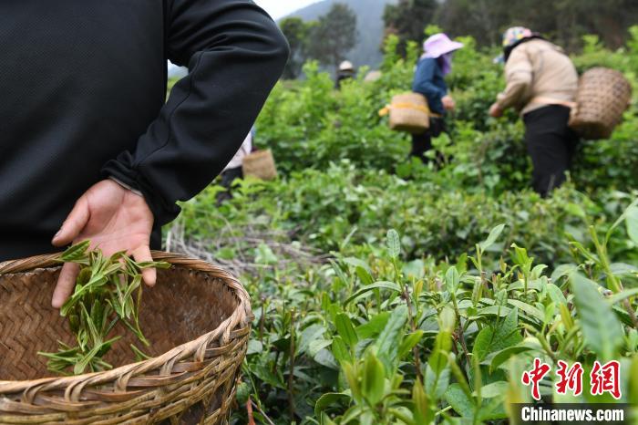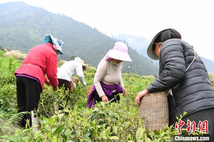 4月21日,西藏林芝市察隅縣下察隅鎮嘎堆嘎美村村民忙著采摘新鮮茶葉。據悉,察隅縣利用獨特的氣候地理條件,2018年起開始大力發展茶產業。目前,察隅縣茶葉種植面積約2.3萬畝,年產值約2000萬元(人民幣,下同),村民通過采摘茶葉,每人每天收入160元,茶葉為當地鄉村振興和經濟發展提供了重要保障。下察隅冬暖夏熱,常年濕潤多雨,年降雨量達1000毫米,年平均氣溫17℃,年日照時數為1680小時,適合種植各類經濟作物。