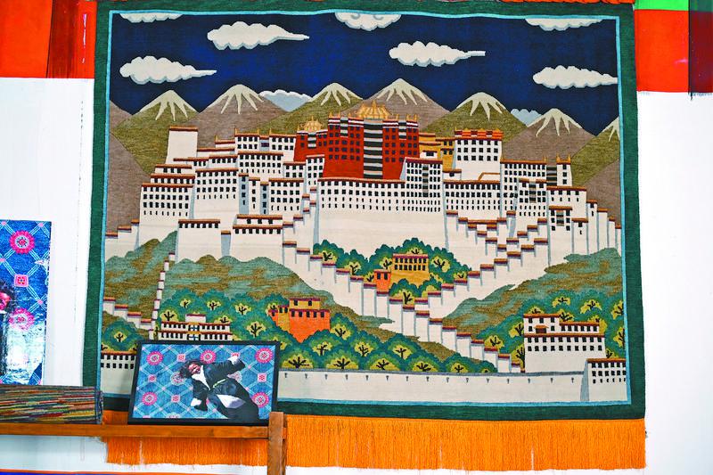 圖為喀瓦堅藏毯廠生產的以“布達拉宮”為題材的藏毯。記者 趙越 攝