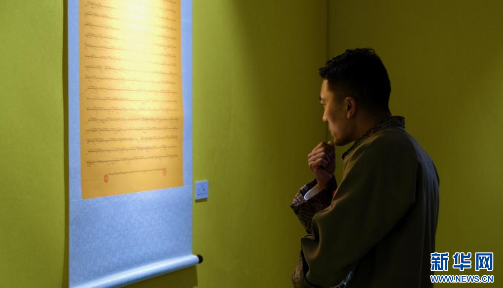 4月28日,第五屆民族團結書法、美術、攝影、微視頻大賽作品展現場。新華網 旦增努布 攝