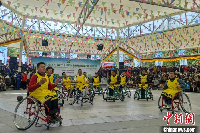 圖為助殘日當(dāng)天,西藏輪椅籃球隊成員表演節(jié)目《健康西藏動起來》。西藏自治區(qū)殘聯(lián)供圖