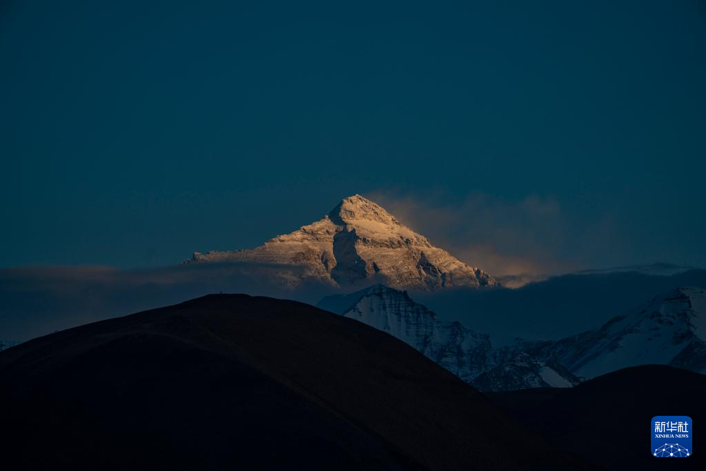 這是在西藏日喀則市定日縣扎西宗鄉拍攝的珠峰夕照(5月19日攝)。新華社記者 孫非 攝