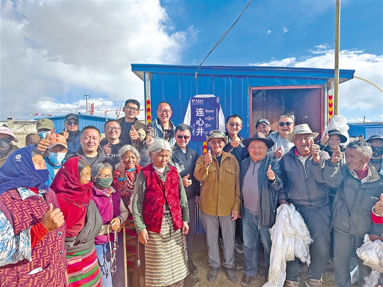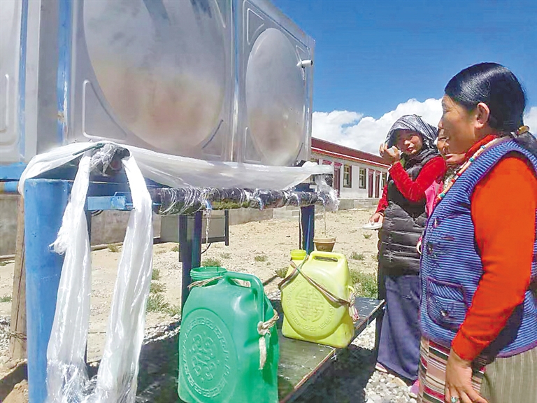 霍爾巴鄉群眾在中國電信西藏公司投資修建的扶貧項目機井取水。