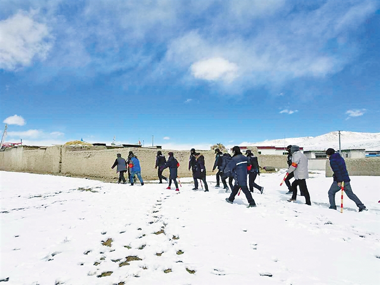 中國電信西藏公司駐霍爾巴鄉駐村工作隊與當地派出所在貢桑村周圍開展巡邏。