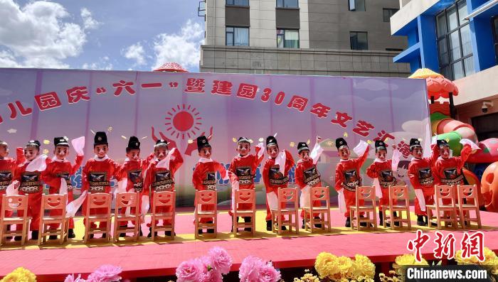 圖為拉薩市堆龍德慶區小太陽幼兒園的孩子們表演節目。宋建英 攝