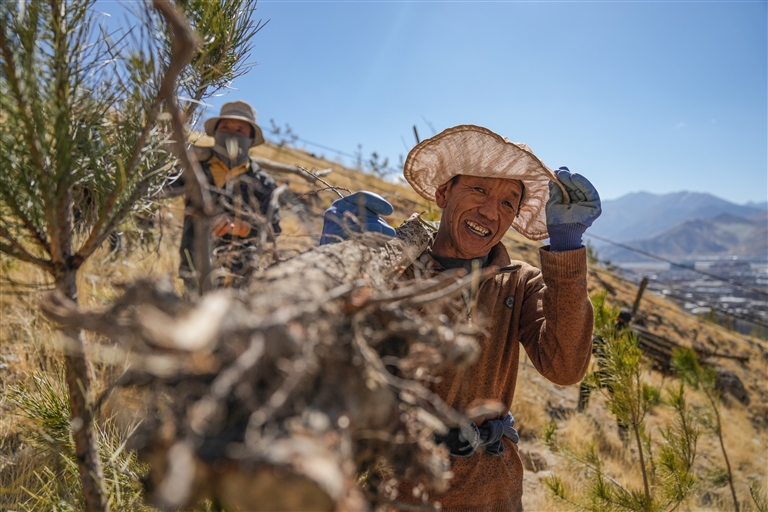 像旦增頓珠這樣依靠種樹增收的群眾還有很多。全區各級政府始終把促進群眾就業增收作為工程建設的出發點和落腳點,通過吸納群眾參與造林綠化,引導企業采購群眾苗木、租用機械等方式,帶動增收近18.6億元,惠及農牧民群眾約500萬人次,努力將綠水青山、冰天雪地的“顏值”轉化為金山銀山的價值。
