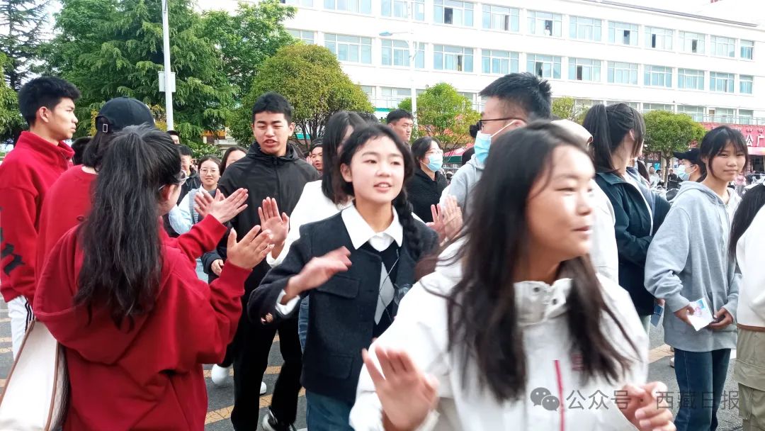 圖為林芝市第二高級中學(xué)考生自信滿滿進場。記者 劉楓 攝