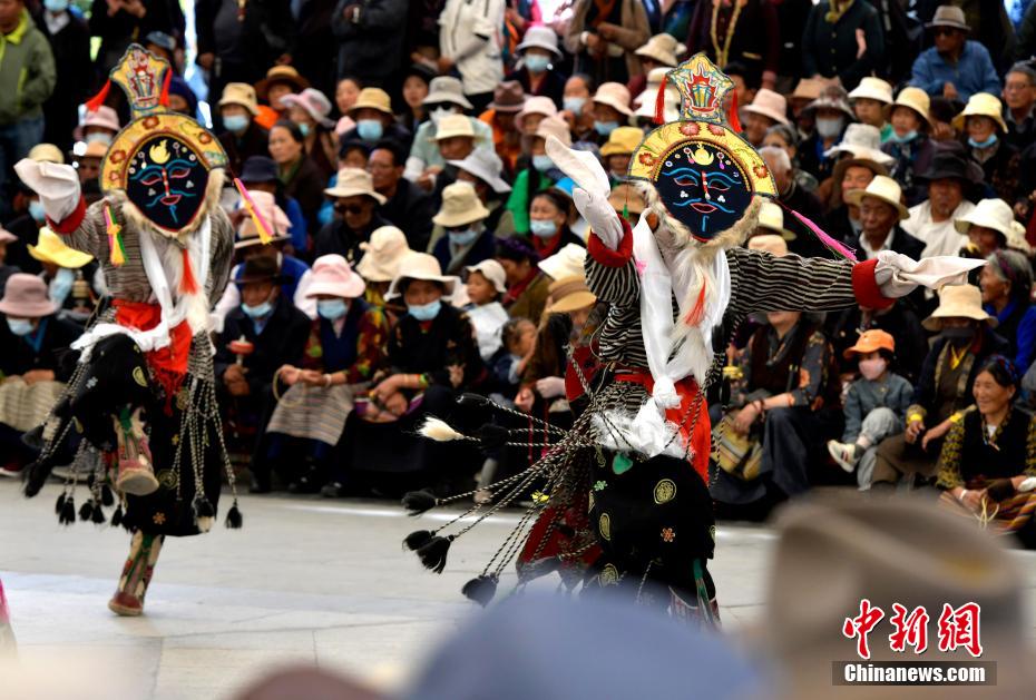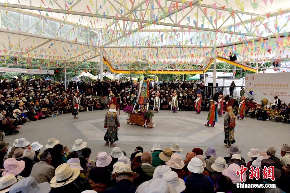 6月12日,藏戲藝人在拉薩市宗角祿康公園表演。從6月9日起,拉薩2024年“藏戲演出季”啟幕。布達拉宮腳下的宗角祿康公園,5支民間藏戲團隊表演的傳統藏戲劇目,吸引當地民眾和游客前來觀看。李林 攝