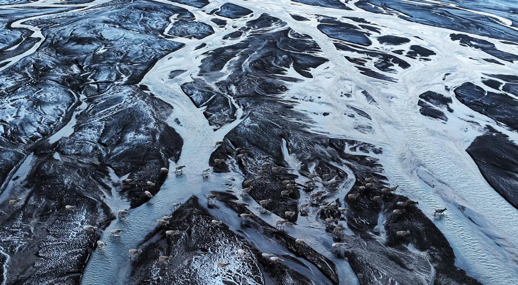 ↑ 在羌塘國家級自然保護區,藏羚羊越過甜水河,前往“產房”。