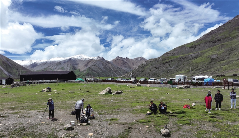 “眼前的景色如此浩瀚,無論我們如何努力,都無法將其完全收入眼底;手中的相機快門不停地按下,卻總感覺無法捕捉到每一處細節的美麗;社交媒體上的照片和視頻,雖然已經分享了無數,但總覺得還有更多美好未能展現。言語在這一刻顯得如此蒼白無力,無法完全傳達我們面對美景時的激動心情?!边@是河南游客張曉明和劉芳夫婦對薩普雪山的贊美。置身于這絕美的畫卷中,一聲聲驚嘆,是他們對大自然鬼斧神工的贊美,也是他們內心震撼的真實寫照。