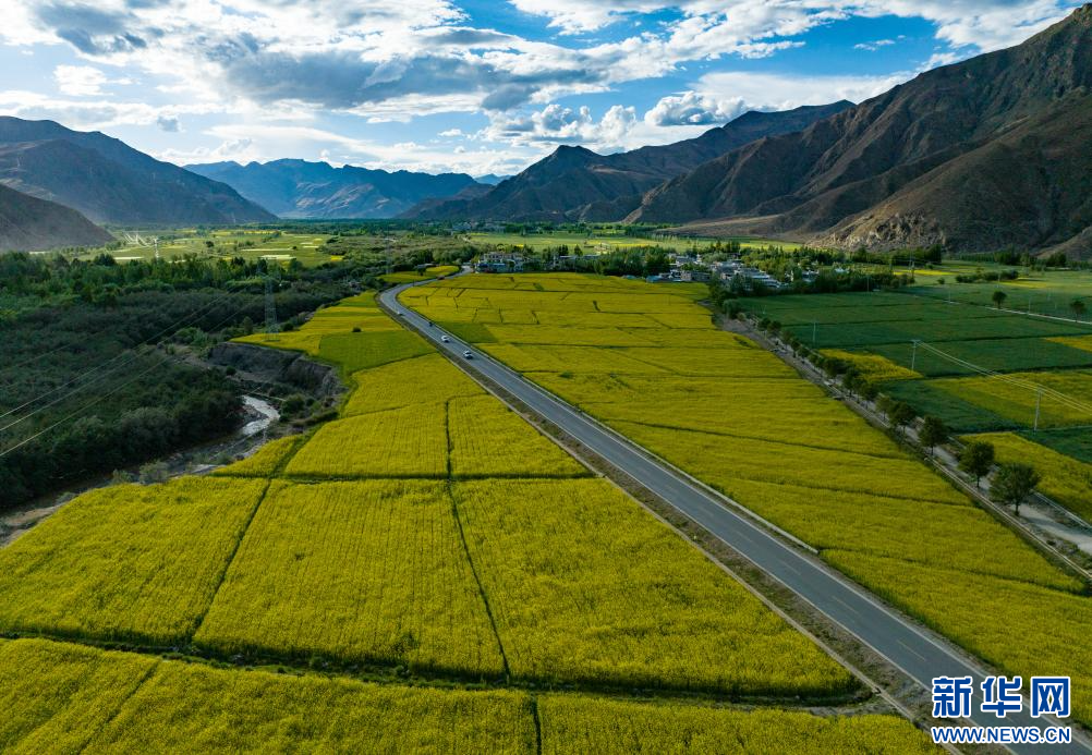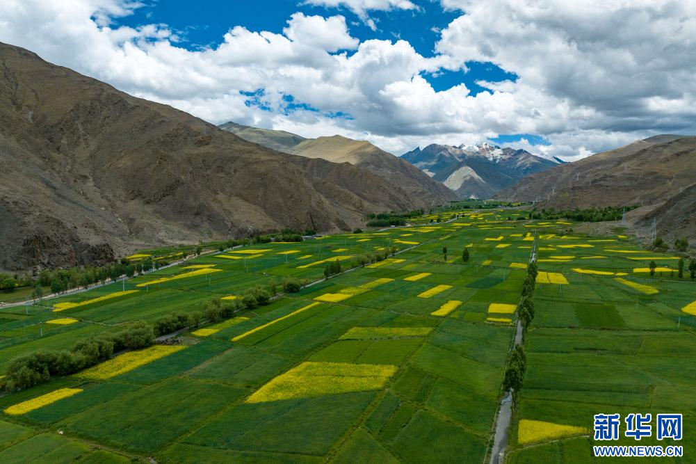 盛夏時節,在西藏山南市乃東區雅礱河谷,金燦燦的油菜花與綠蔥蔥的青稞地交相輝映,河谷變成大自然的調色盤,宛如一幅絢麗的畫卷。