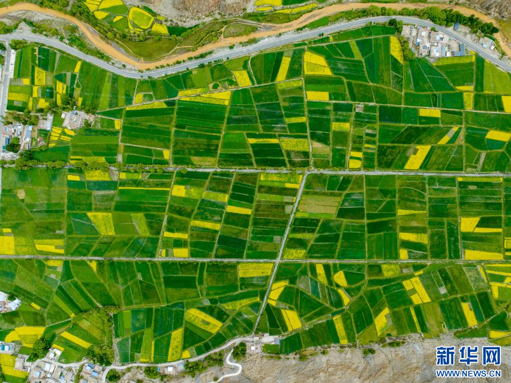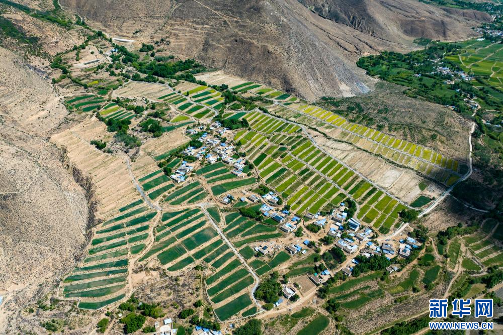 6月23日在西藏山南市乃東區境內拍攝的田園風光(無人機照片)。新華網 旦增努布 攝
