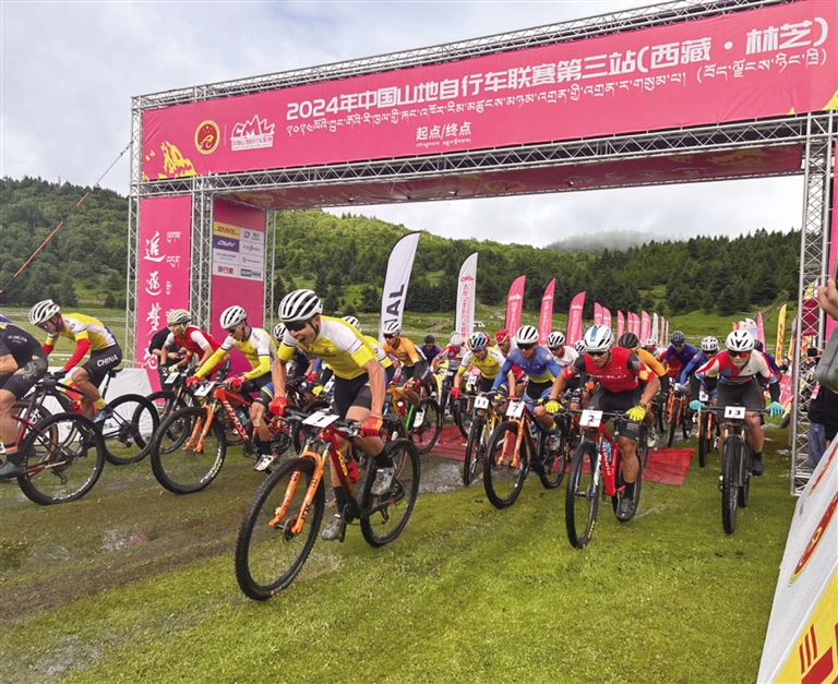 6月29日,2024年中國山地自行車聯賽第三站(西藏·林芝)在林芝市比日山國家森林公園天邊牧場開賽。來自全國各省、自治區、市的16支專業代表隊,以及業余選手、自行車愛好者們一同角逐競技。