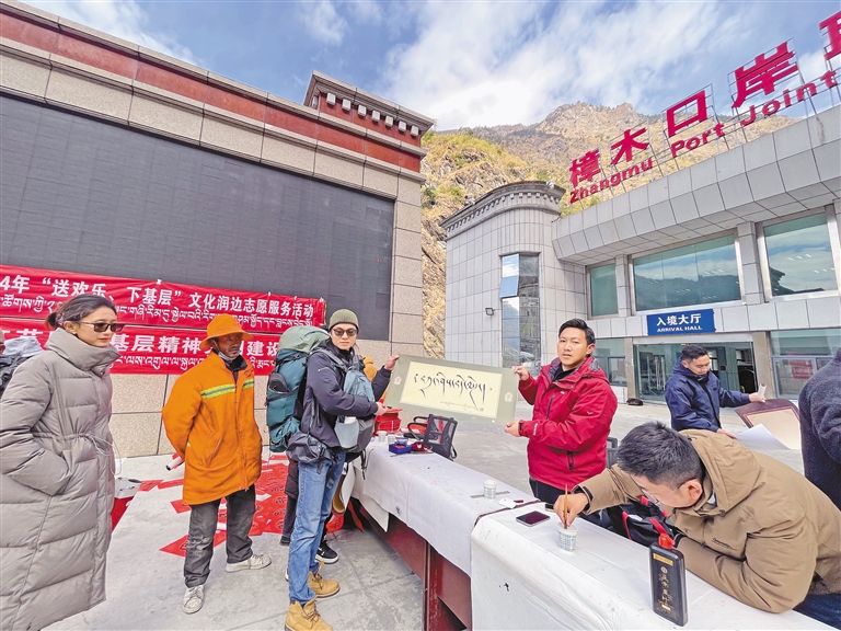 圖為日喀則市文聯(lián)在樟木口岸舉行送新春祝福活動。