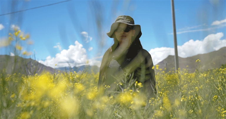 7月初,記者一行驅車從拉薩出發,在開往錯那市的路上,經過了瓊結縣百畝油菜花和隆子縣錯落有致的油菜花田。烈日下,油菜花是這片大地的“主角”,是山南市每年盛夏從不缺席的芬芳。一路走來,油菜花肆意地盛開在道路兩旁、村莊里、半山腰……微風拂過,花朵搖曳生姿綻放著,從稍遠處看,俗坡奴村錯落分布在黃綠交錯的田野中,仿若一幅美麗清新的鄉村田野詩畫。此時,看風景的行人紛紛鉆進花田中,仿佛是跟油菜花“爭芳斗艷”。