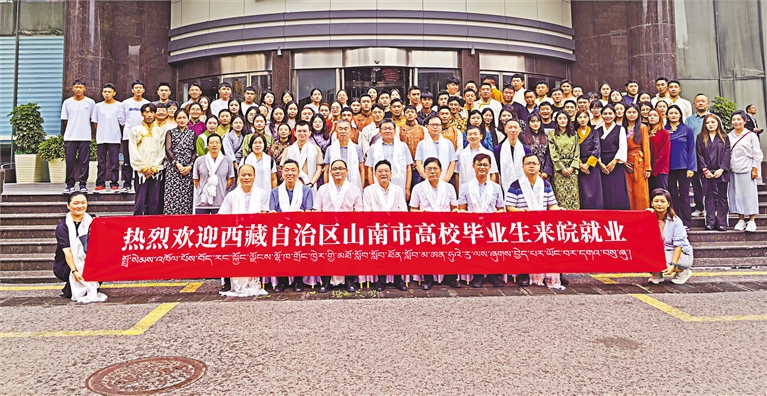 2023年9月,106名西藏籍高校畢業生組團赴安徽省就業,在全區實現首個百人以上規模的“大組團”區外市場化就業目標。圖為西藏籍高校畢業生抵達安徽后合影留念。