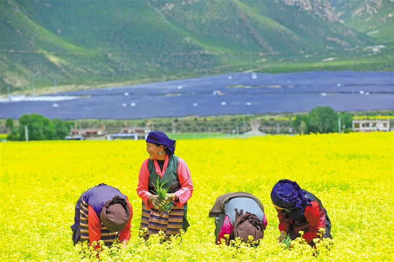 墨竹工卡縣扎雪鄉龍珠崗村村民在田間勞作。
