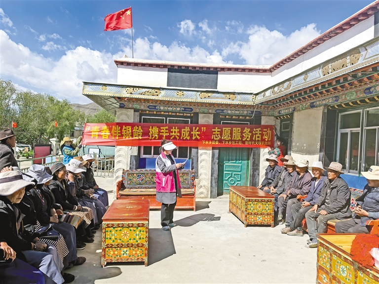 為增強(qiáng)新時(shí)代黨員干部社會責(zé)任意識,傳承尊老敬老的中華優(yōu)秀傳統(tǒng)美德,近日,瓊結(jié)縣下水鄉(xiāng)機(jī)關(guān)黨員、青年志愿服務(wù)隊(duì)前往唐布齊村開展“青春伴銀齡 攜手共成長”志愿服務(wù)活動。