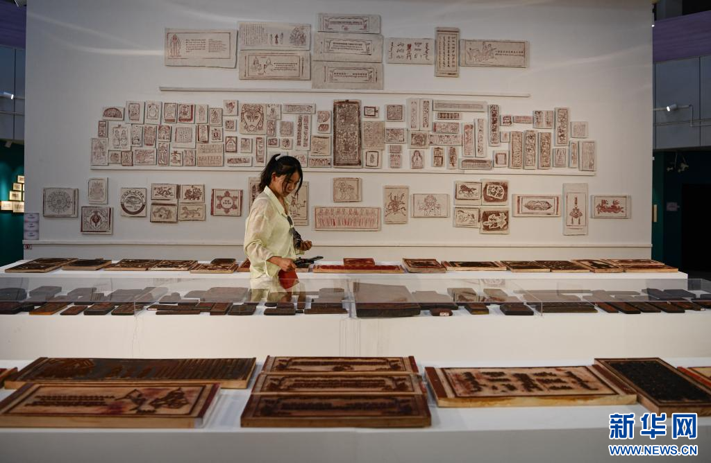 7月19日,工作人員在展示體驗區的雕版及印刷品。