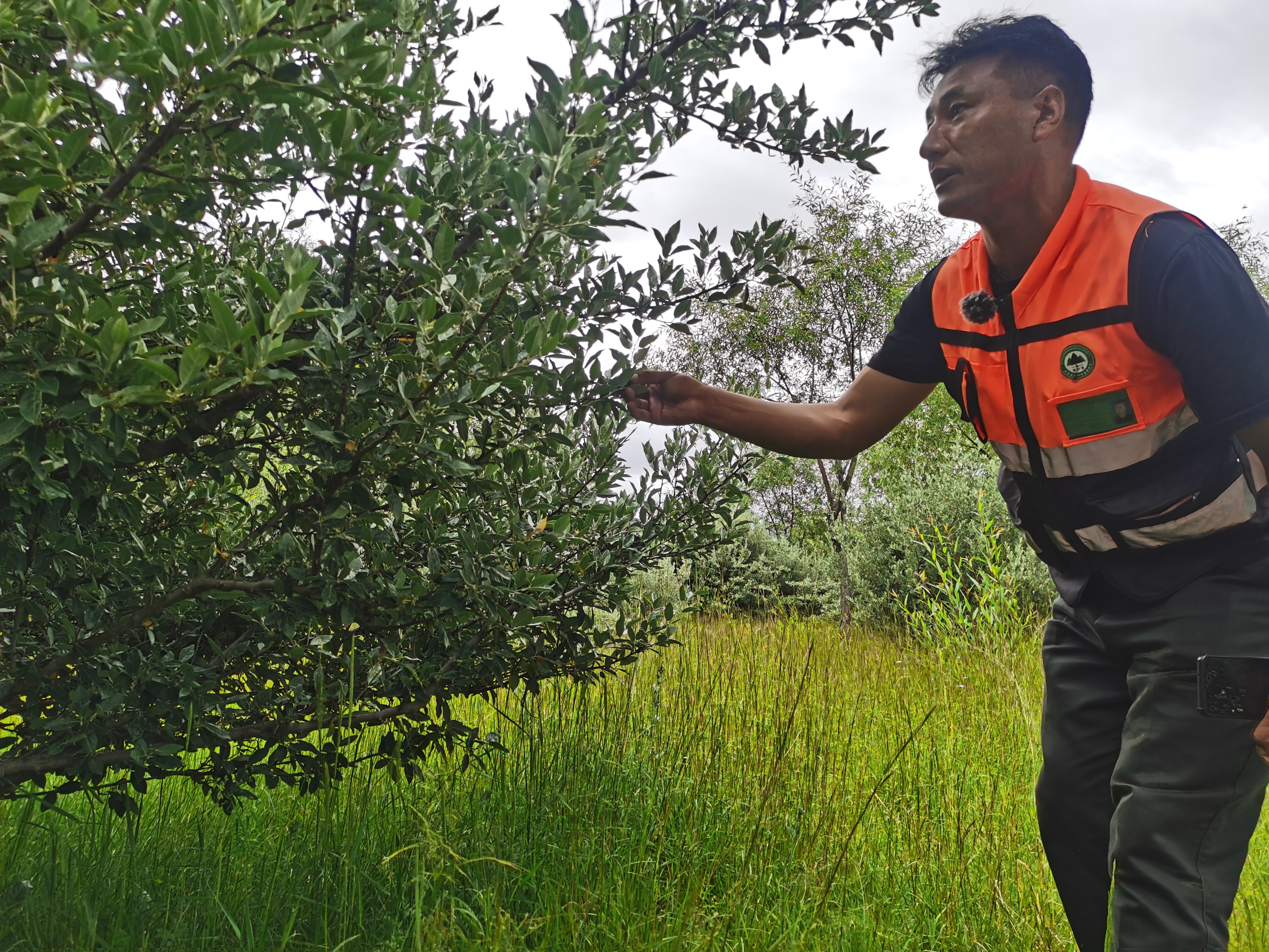 旺扎談到,他很喜歡管護(hù)員這份工作,一干就是18年。這里的一草一木他每天都要查看,有時(shí)能一眼看出哪些樹(shù)木遇到了什么樣的蟲(chóng)害問(wèn)題。一旦有蟲(chóng)害發(fā)生,他會(huì)馬上向上級(jí)主管部門匯報(bào),及時(shí)跟進(jìn)治療。為了更好做好濕地管護(hù)工作,每年旺扎還會(huì)參加3~4次培訓(xùn),學(xué)習(xí)如何分辨林草病蟲(chóng)害、如何防火等。如今,濕地生態(tài)越來(lái)越好,很多外地的游客慕名前來(lái)。每次看到他們專程來(lái)到這里欣賞美景,拍照打卡,他都會(huì)很開(kāi)心。在旺扎眼里,這兒一年中最美好的季節(jié)莫過(guò)于夏季,此時(shí)到處是綠綠的草、清清的水,還有各色各樣的野花競(jìng)相開(kāi)放。