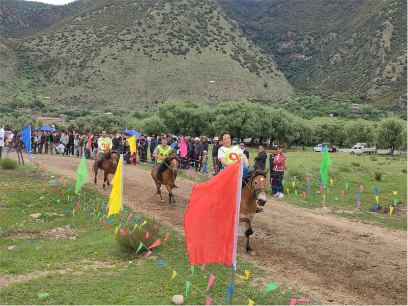 7月22日,林芝鎮第七屆尼洋旅游文化之民俗賽馬藝術節在西藏林芝市巴宜區林芝鎮嘎拉村舉行。賽場上,駿馬奔騰,選手們策馬揚鞭,激烈角逐,觀眾的喝彩聲此起彼伏,場面熱鬧非凡。據了解,已舉辦七屆的賽馬藝術節不僅是當地的傳統節慶,更是展示地方文化經濟特色的盛會。
