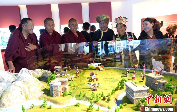 圖為瓊結縣僧尼及農牧區民眾代表參觀主題教育館。曲杰 攝