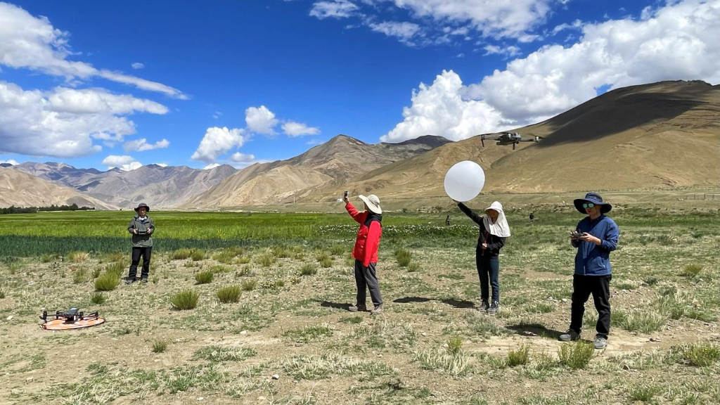團隊開展探空氣球大氣廓線觀測和無人機熱紅外影像獲取。(中國科學院空天信息創新研究院供圖)