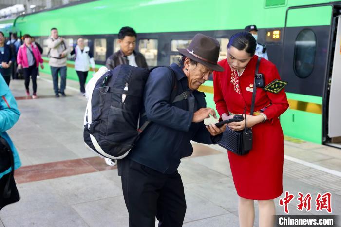 圖為拉日鐵路列車乘務員服務藏族旅客。資料圖 馬生明 攝