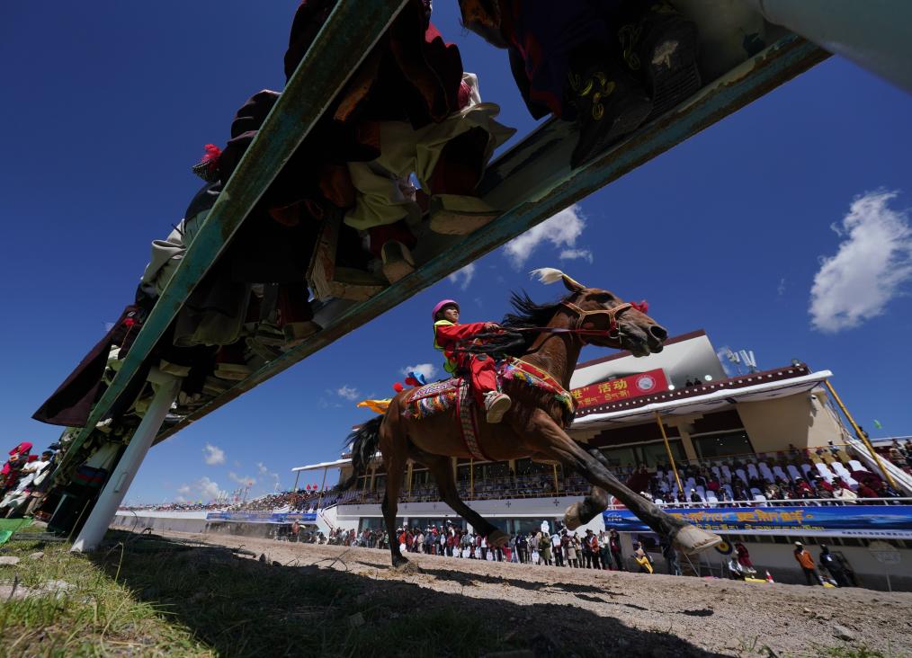 藏北牧民有多愛馬?每匹駿馬都裝飾著精致多彩的綢緞或毛毯,鬃毛和尾巴也梳起俊美的發辮;為避免用力時弄痛馬兒,一些小騎手脫去運動鞋,跨上馬鞍時只穿襪子。