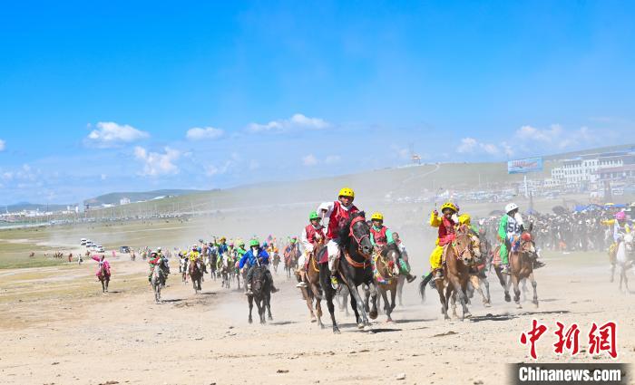 圖為8月12日,210名選手角逐那曲恰青羌塘賽馬節。中新社記者 趙朗 攝