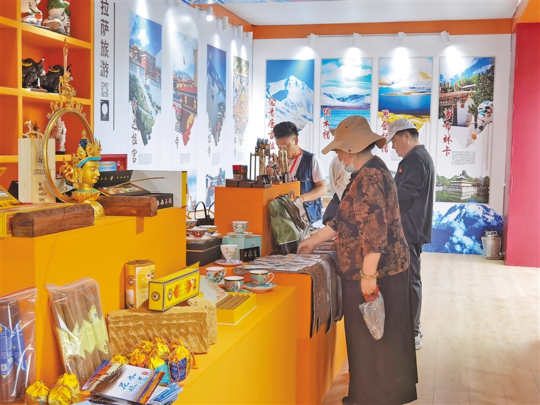 第二屆西藏文化藝術節期間,游客在參觀非遺文創產品。記者 鄭璐 袁海霞 攝