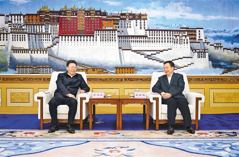 王君正代表自治區黨委、政府對俞建華一行到藏考察表示歡迎,對海關總署長期以來給予西藏工作的大力支持表示感謝。王君正指出,黨的十八大以來,以習近平同志為核心的黨中央高度重視西藏工作,習近平總書記親臨西藏視察指導,多次作出重要指示批示,確立了新時代黨的治藏方略,明確了“穩定、發展、生態、強邊”四件大事,為我們做好西藏工作指明了前進方向、提供了根本遵循。