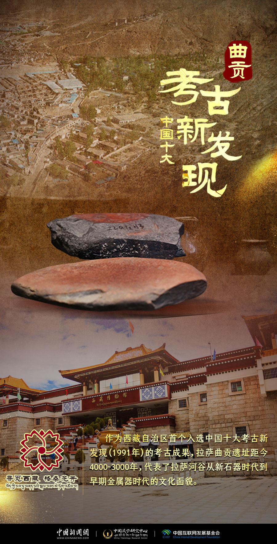 卡若遺址距今約5000年左右,第一次將西藏高原史前人類生存活動的科學證據揭露于世。2021年10月,西藏昌都卡若遺址入選中國“百年百大考古發現”。曲貢遺址位于拉薩市北郊,距市區約五公里,是迄今在西藏發現的海拔最高、面積最大,文化層堆積較厚,文化內涵極其豐富的遺址之一,被譽為拉薩的“半坡”。它們勾勒出青藏高原的文明年輪。
