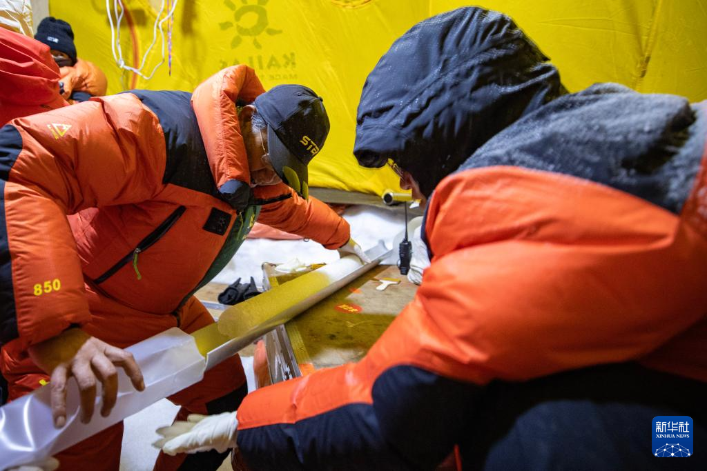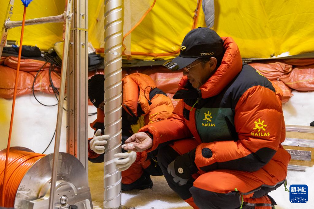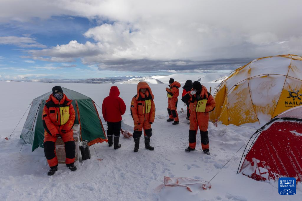 9月11日晚,由中國科學院青藏高原研究所副所長徐柏青研究員帶領的科考團隊在普若崗日冰原頂部海拔6100米的“Dome.C”點開機鉆取冰芯。