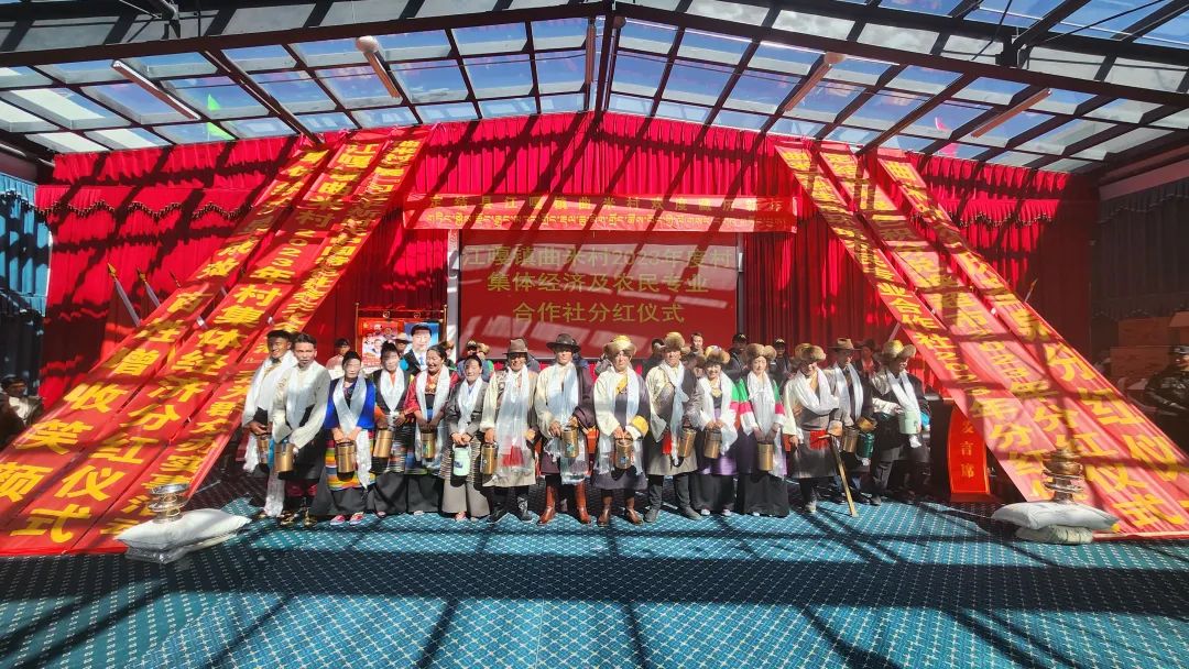 扎西崗鄉扎西崗村搬遷戶格桑一家,在原村時僅靠幾畝耕地及丈夫旺堆農閑時外出務工收入維持生活開支,自搬遷以來,格桑成了一名環衛工人,每月收入2200元,同時納入家政服務公司靈活就業,2024年八個月內格桑一戶收入就超過了6萬元;曲米村于2019年成立定結縣宗熱生態環境農民專業合作社,在縣里的支持下爭取到了縣城周邊綠化養護項目,合作社吸納了39人穩定就業、90余人靈活就業,近兩年發放工資共計39萬元,分紅共計144.5萬元,社員人均增收7889.4元,并且在縣委縣政府及縣自然資源與林業和草原局的關心厚愛下,2024年在曲米村易地搬遷專題會議上,將縣城周邊綠化養護項目繼續交由宗熱生態合作社實施,并將綠化經費提高至70萬元;此外,對外出租曲米新村商業街,每年收取商業街70%收入,出租老村委會,每年收取7萬元租金。正在經營的積分兌換超市等共計7個村集體經濟及農民專業合作社,2022和2023兩年共兌現分紅190余萬元,鼓起了搬遷群眾的錢袋子。