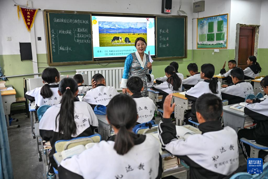走進西藏阿里地區札達縣九年一貫制學校,初三(2)班的孩子正在上民族團結主題思政課?!罢l能講一個關于愛國的故事?”老師次仁曲加問。孩子們思索片刻,爭搶著舉手,扎西格堆第一個站起來回答:“江孜保衛戰!面對侵略者數次進攻,雖然彈盡糧絕,各族同胞仍堅持戰斗、寧死不屈,展現出團結一心、眾志成城的精神……”