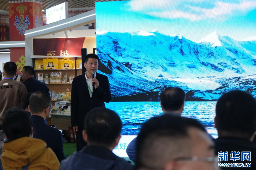 西藏供銷集團相關負責人正在向參會企業推介西藏特色產品。(西藏供銷集團供圖)