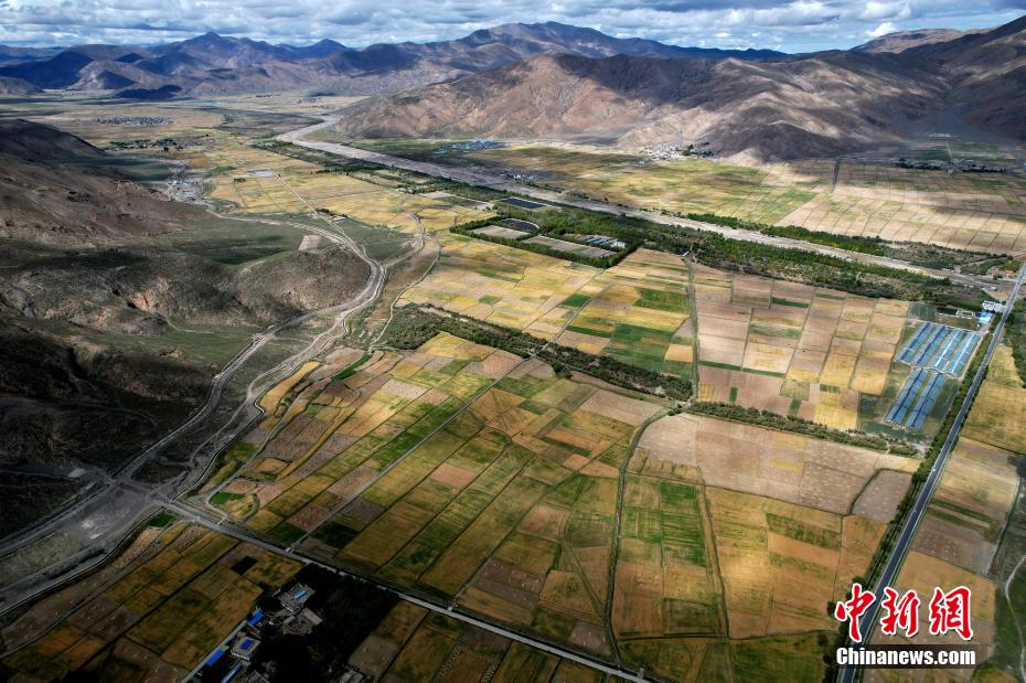 圖為9月14日,日喀則市江孜縣金黃色的青稞田。中新社記者 李林 攝
