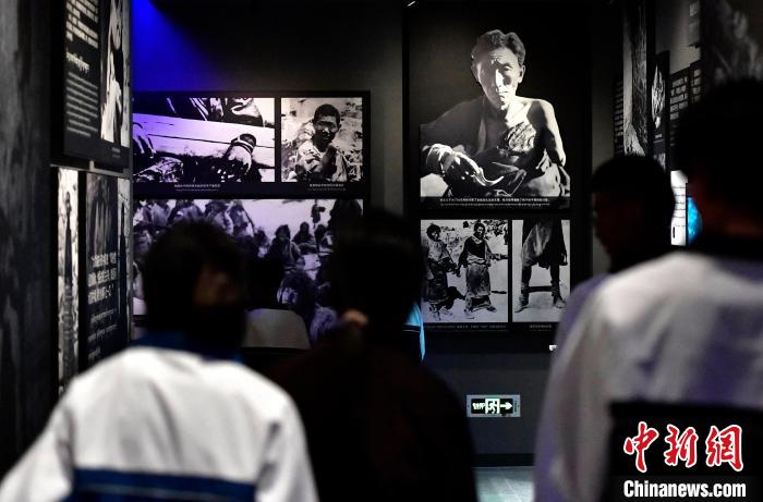 圖為9月14日,觀眾在西藏百萬農奴解放紀念館日喀則分館內看展覽。中新社記者 李林 攝
