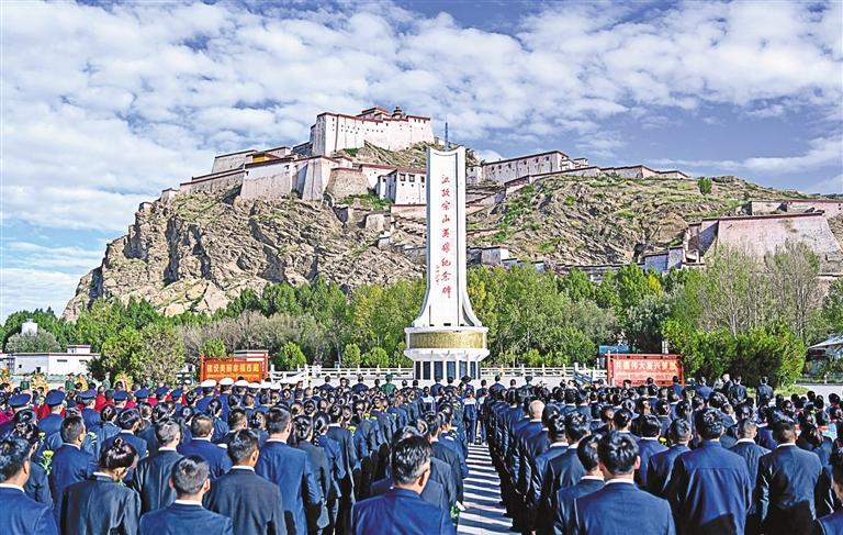 圖為9月14日,江孜宗山腳下,日喀則市舉行紀念江孜抗英斗爭120周年公祭活動。記者 旦增嘎瓦 扎西頓珠 攝