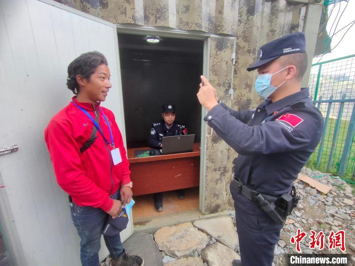 圖為吉隆出入境邊防檢查站民警在貢當傳統邊貿點對入境邊民進行人證對照。 季馨 攝