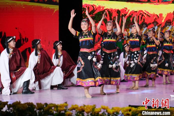 9月23日晚,西藏自治區首屆殘疾人文藝匯演在拉薩開演,來自西藏各市地的聽障、視障以及肢體殘疾群體紛紛登上舞臺一展風姿,舞蹈、歌曲、手語等節目輪番上陣。圖為當日演出現場,孩子們表演舞蹈。記者 江飛波 攝