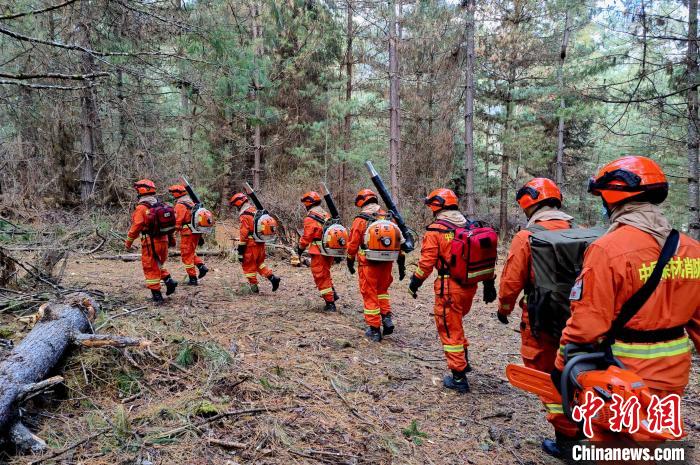 圖為森林消防員在林內(nèi)攜裝巡護(hù)。王澤棟 攝