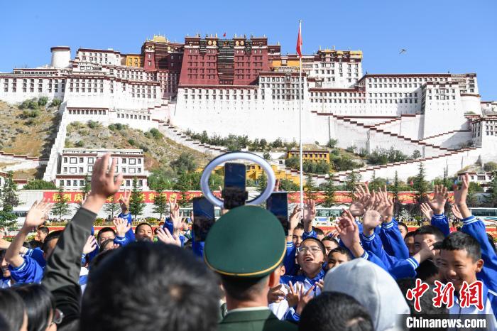 10月1日上午,西藏自治區在布達拉宮廣場舉行“升國旗、唱國歌”儀式,慶祝中華人民共和國成立75周年。中新社記者 貢嘎來松 攝