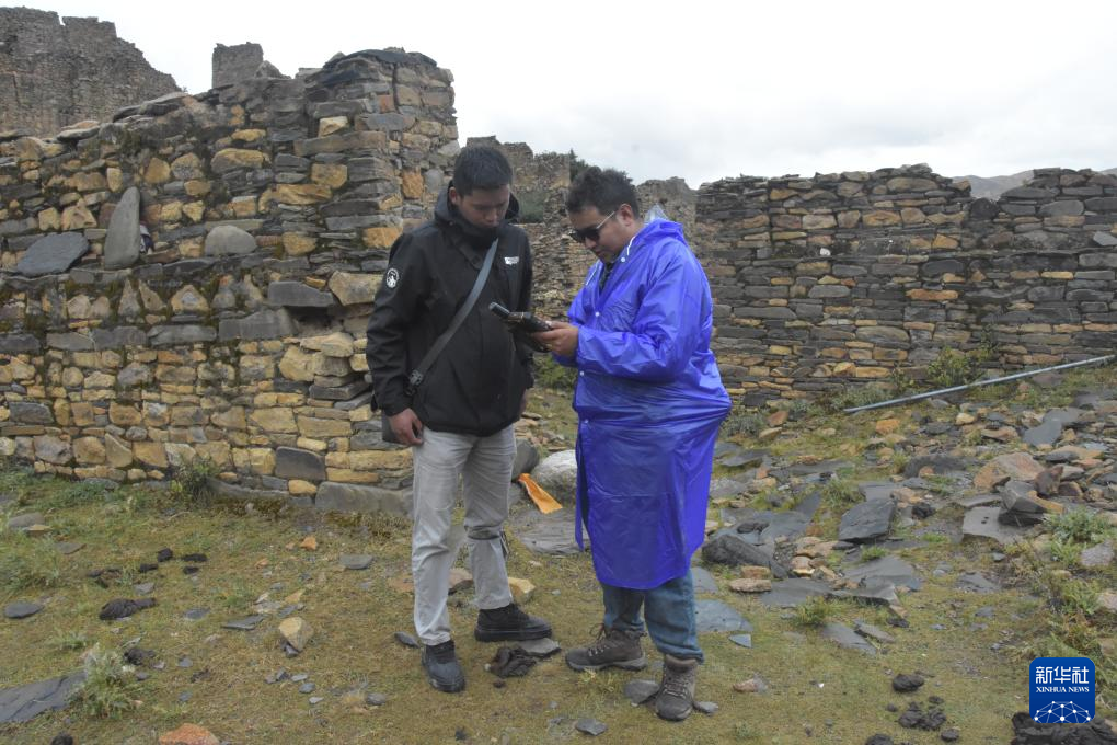 普查隊員正在采集和復核日喀則市桑珠孜區塔巴遺址本體邊界坐標及單體范圍。新華社記者 春拉 攝