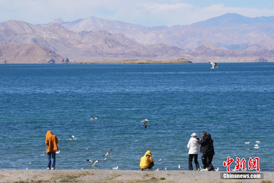 10月4日,游客在班公湖畔游玩。“十一”國慶假期,西藏日土縣班公湖吸引不少游客觀光游覽。中新社記者 崔楠 攝
