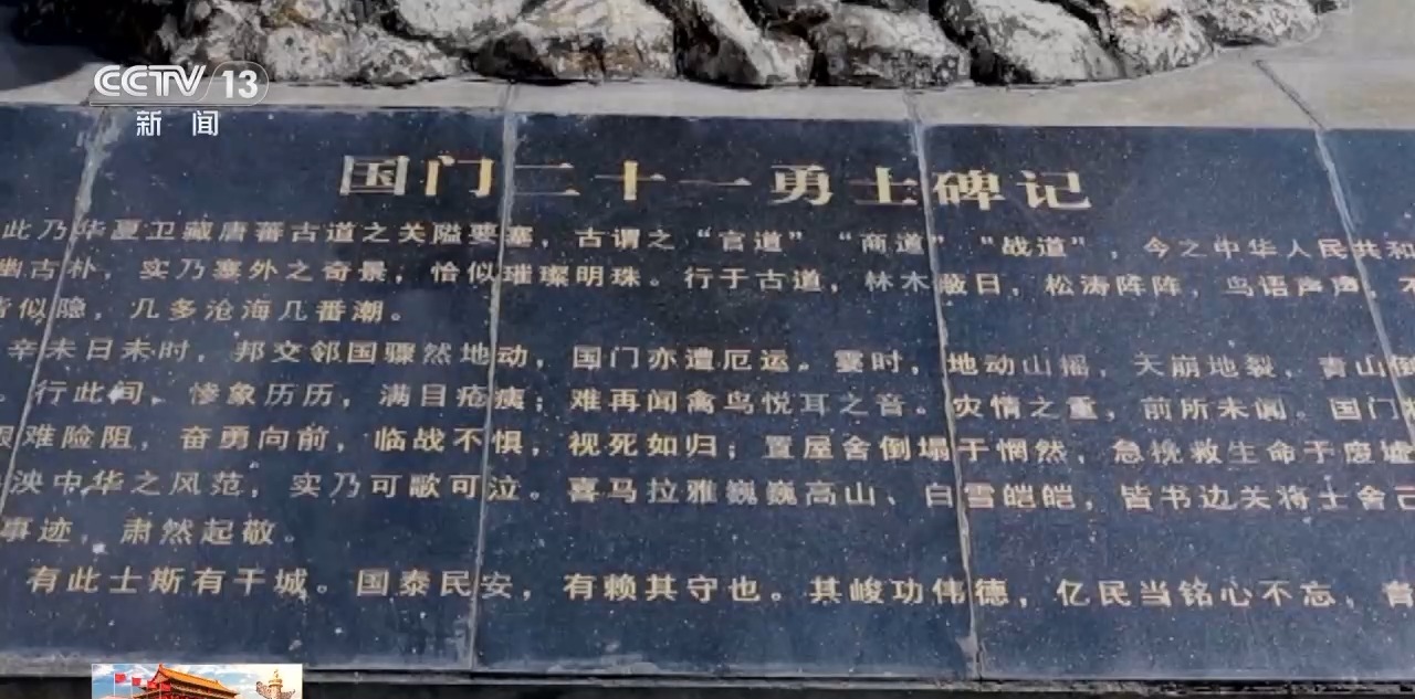 今天的吉隆口岸既是商旅之關,也是勇士之關。在中尼兩國第48號界樁旁的這個21勇士雕塑,記錄著2015年4月25日,尼泊爾發生里氏8.1級地震,吉隆口岸一度成為“生命孤島”,中國青年邊檢官兵主動請纓,在等待馳援的時間里堅守國境,面對不斷發生的余震、滑坡和泥石流,他們除了協助中尼兩國邊民避險,每天最重要的工作就是將五星紅旗準時在吉隆口岸升起。